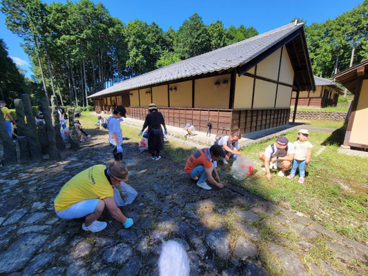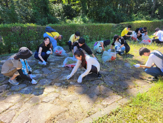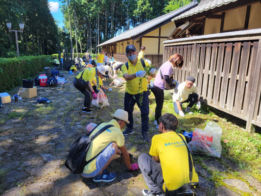 みのかも文化の森にて、南駐車場~国道41号線沿い道路の清掃・アトリエ等・生活体験館付近の草むしり等の清掃活動を行い、